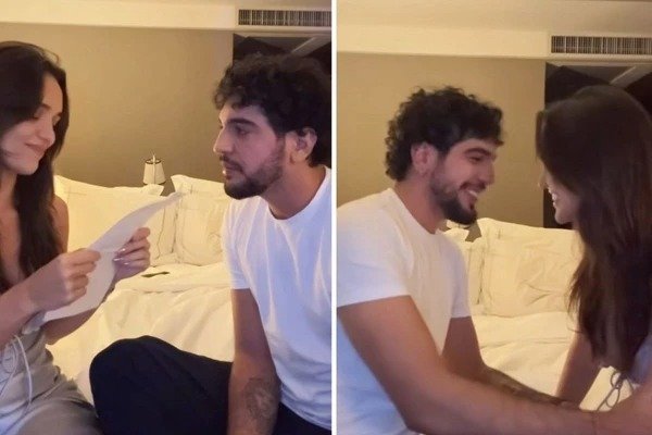 “Nosso maior sonho está se formando”, escreveu o casal na publicação. No vídeo, a apresentadora gravou o momento em que contou sobre a gravidez ao cantor. Rafa leu uma carta escrita a Nattan.