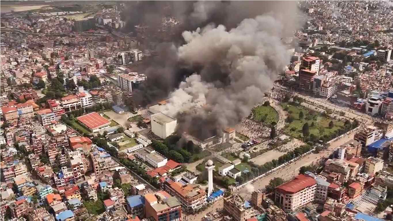 Paralamento do Nepal é incendiado por manifestantes (Foto: Rerpodução/X - @eixopolitico)