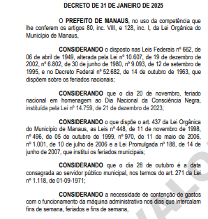 Fonte: Trecho do Diário Oficial de 31 de janeiro de 2025
