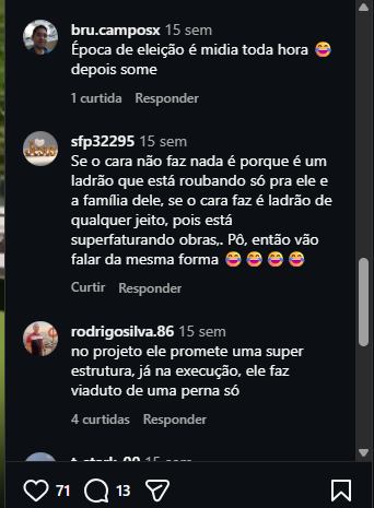 Outros criticaram o momento da intervenção. “Em época de eleição é muita divulgação, depois some”, escreveu outro internauta. Há ainda quem questione os benefícios da obra: “Só beneficia a Ponta Negra, facilita o trânsito para poucos”.