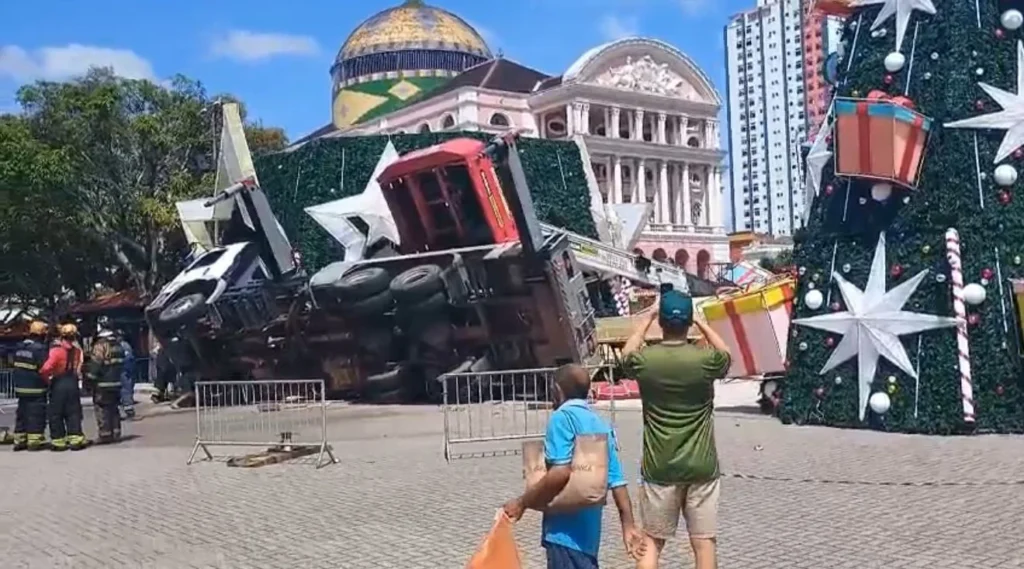 Um guindaste caiu durante a montagem da Árvore de Natal do Largo de São Sebastião, resultando na morte do trabalhador Antônio Paulo Rodrigues de Souza, de 40 anos.