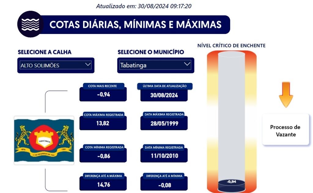 O riosdenoticias.com.br acompanha os dados do Painel do Clima do Amazonas, que disponibiliza informações em tempo real das cotas diárias, com registros históricos de mínimas e máximas dos rios do estado, por meio de monitoramento hidrometeorológico.
