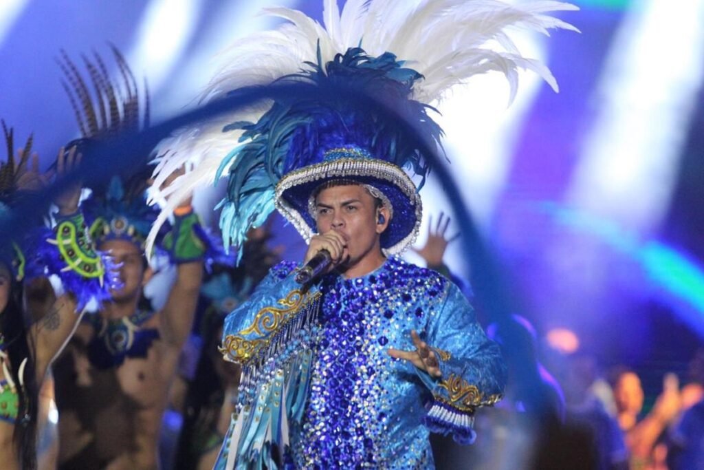 O levantador de toadas é o responsável por cantar as toadas, interpretando-as da melhor forma para garantir as pontuações e agitar a torcida na arquibancada do Bumbódromo. É isso mesmo, o item 2 é quem agita as galeras. No Caprichoso o levantador é o Patrick Araújo, já no Garantido é Sebastião Júnior. Sobrinho e tio em bois diferentes.