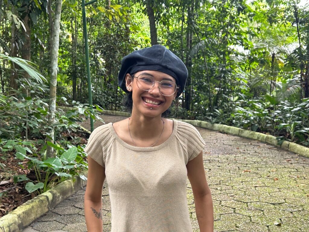 A visitante Beatriz Oliveira, que conheceu o Bosque da Ciência pela primeira vez, destacou a experiência imersiva e a sensação de bem-estar proporcionada pelo ambiente natural.