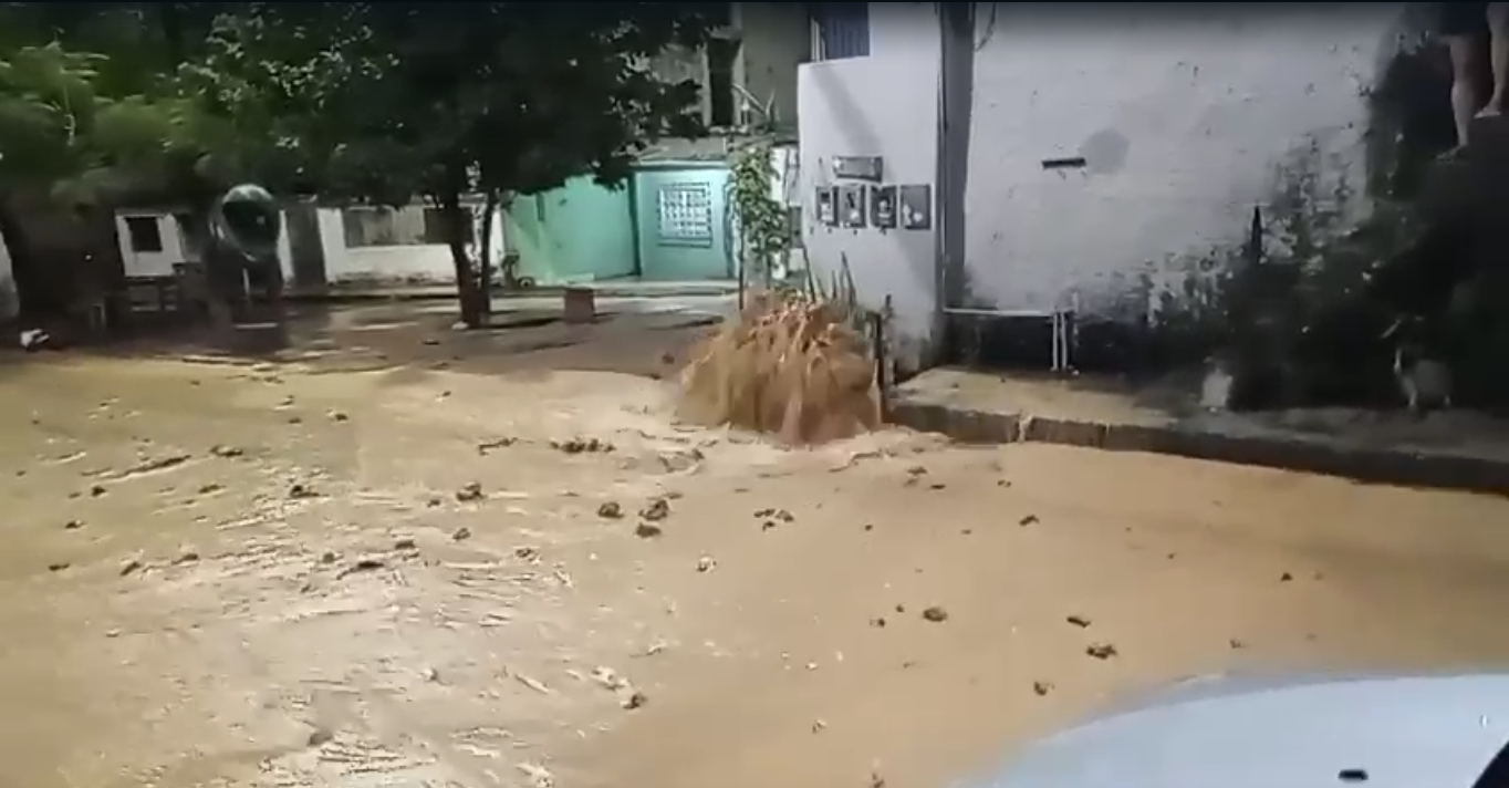 A força da água foi suficiente para arrastar lama por cerca de três ruas, o que piorou os danos nas residências, gerando preocupação aos moradores.