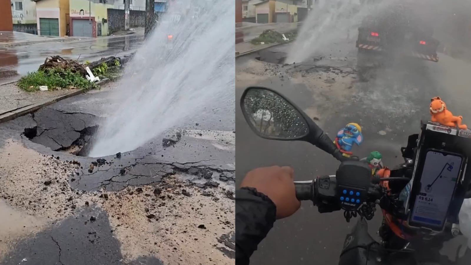 A denúncia foi feita por Albezak Conceição, que filmou o momento em que o cano se rompeu, provocando um congestionamento na região e prejudicando a mobilidade local.