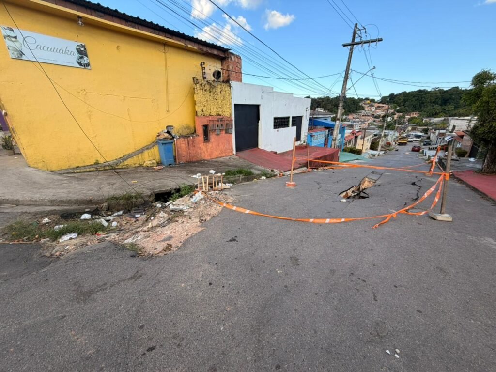 Além da cratera, o entorno apresenta várias rachaduras que podem comprometer residências próximas, aumentando o risco de desabamentos. Enquanto não há solução definitiva, os moradores vivem sob perigo constante, temendo que a situação se agrave.