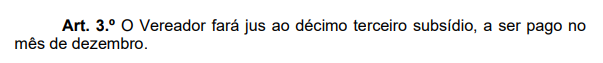 Além de fixar o subsídio, o projeto de lei também prevê que os vereadores terão direito ao décimo terceiro, que será pago em dezembro. A propositura estabelece que as faltas dos parlamentares implicarão descontos no salário.