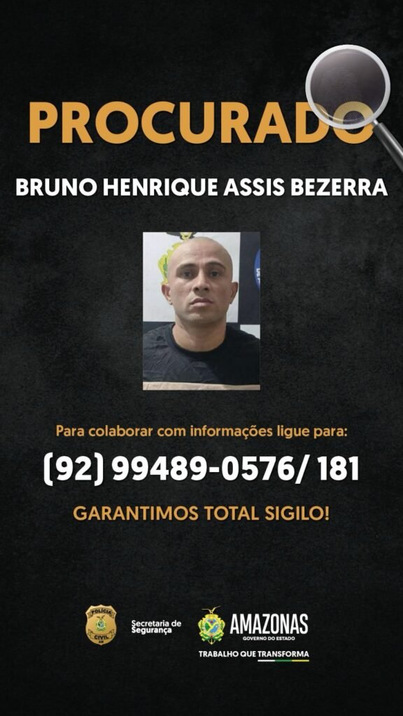 A Polícia Civil do Amazonas (PC-AM) solicita que qualquer informação sobre o paradeiro de Bruno Bezerra deve ser repassada pelos telefones (92) 99489-0576 ou pelo disque-denúncia 181, da Secretaria de Segurança Pública do Estado do Amazonas (SSP-AM), sob garantia total de sigilo.