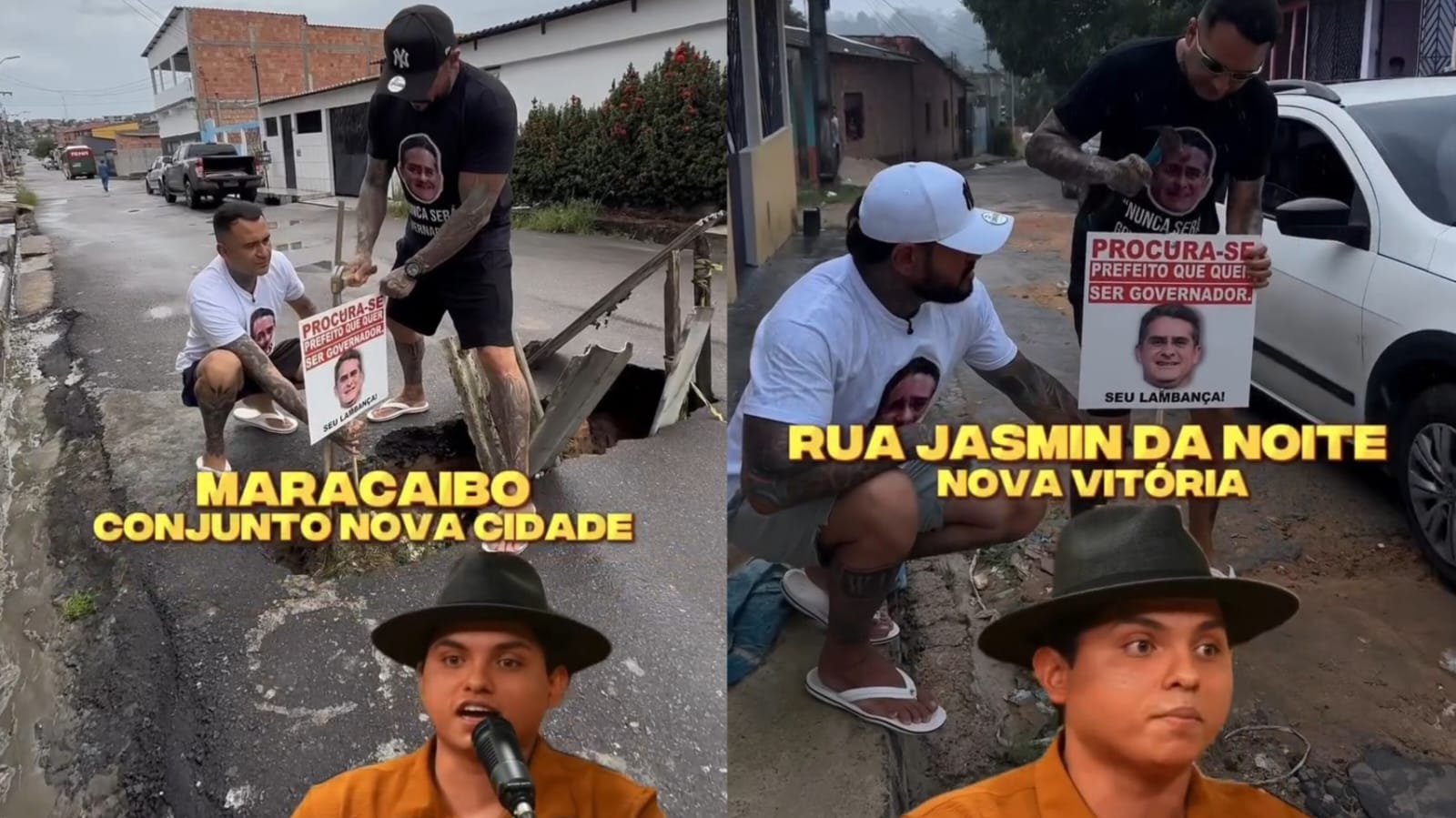 Ao longo do vídeo, moradores também aparecem relatando dificuldades enfrentadas no dia a dia. Em um dos depoimentos, um residente da rua Jasmin da Noite, no bairro Nova Vitória, cobra ações do poder público. “Todo mundo paga luz, paga água e está tudo abandonado do mesmo jeito. E aí, prefeito?”, afirma.