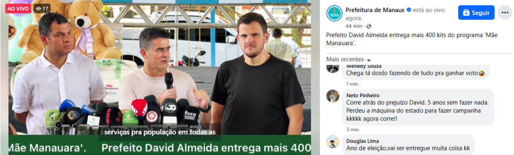 Além disso, outros internautas comentaram que David Almeida estaria “correndo atrás do prejuízo”, alegando que a gestão não teria realizado tantas entregas ao longo do mandato.