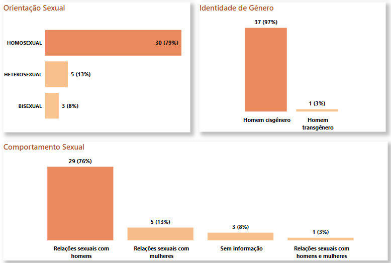 Com relação ao comportamento sexual dos pacientes, 76% relataram ter relações com homens, 13% com mulheres, 3% com ambos os sexos e 8% preferiram não informar.