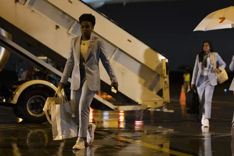 Jogadoras da seleção após desembarque na Austrália (Thais Magalhães/CBF)