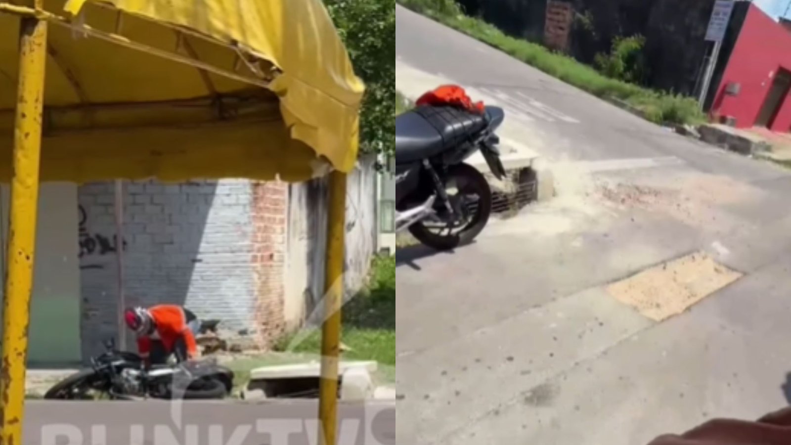MANAUS (AM) – Um servidor da Secretaria Municipal de Infraestrutura (Seminf) foi flagrado caindo em um buraco em uma rua de Manaus. O episódio, registrado e publicado pela Blink TV neste sábado, 16/8, ganhou repercussão nas redes sociais e reacendeu críticas à situação das vias da capital.