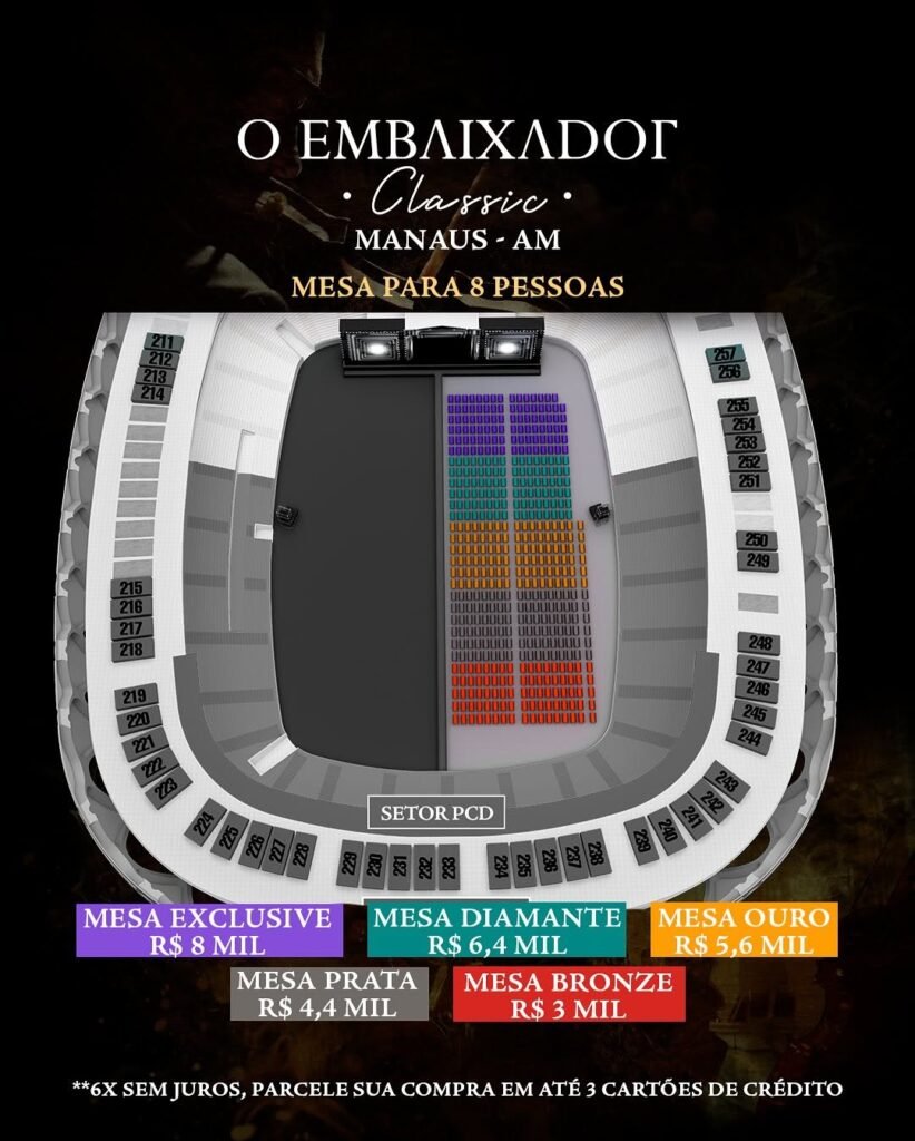 Os preços chamaram atenção entre os amazonenses nas redes sociais. Em comentários no anúncio do evento, internautas dizem: “Pagando o valor das mesas, o Gusttavo Lima senta pra beber comigo?”, “Eu posso levar a mesa no fim do evento?” e ainda: “Achei barato”.