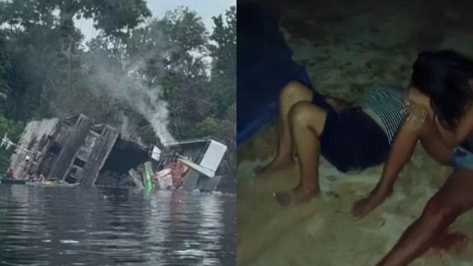 Passageiros resgatados e outros que chegavam nadando eram levados para as margens da comunidade com graves queimaduras pelo corpo.