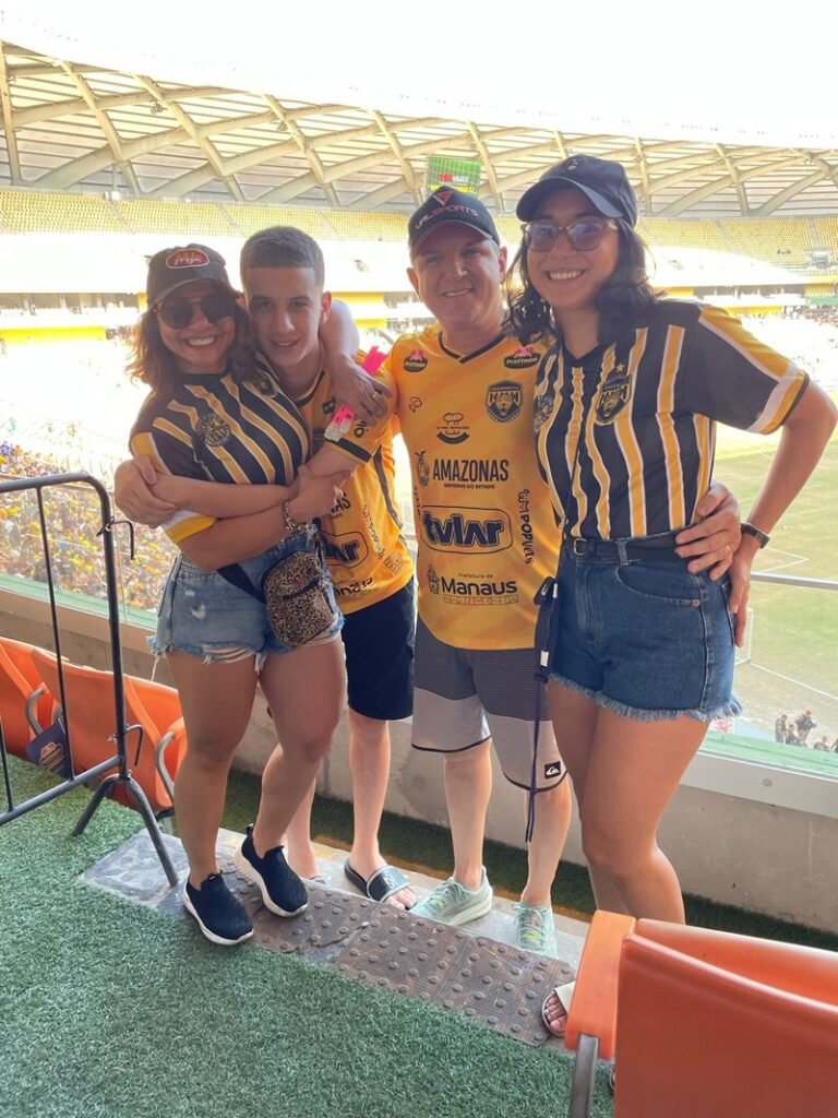 MANAUS (AM) – Comerciante no bairro Armando Mendes, na zona Leste de Manaus, Maria Andriola, 43 anos, acompanhou de perto o nascimento do Amazonas FC e vem assistindo na primeira fila o crescimento do time. Ao lado do marido e do filho de 18 anos, a fã da Onça-Pintada é uma das primeiras sócias-torcedoras do clube da capital manauara.