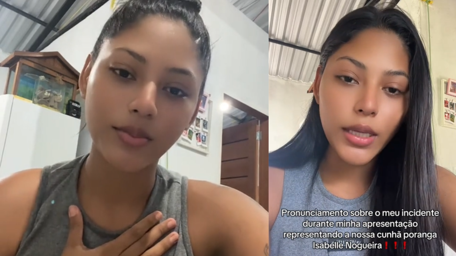 Ela explicou que substituía a cunhã-poranga Isabelle Nogueira na ocasião e que, ao executar um movimento mais forte, perdeu o equilíbrio. “Fiz um movimento com tanta força que não tive controle do meu corpo”, contou.