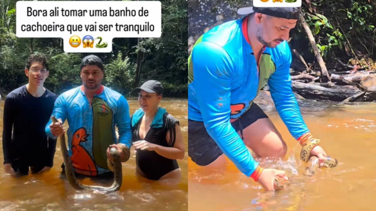 O vídeo, divulgado no Instagram do Guia de Turismo Amazonas, mostra a cobra no ambiente natural perto das rochas, em meio à vegetação próxima à água. Nas imagens, o guia turístico Mário Sérgio aparece segurando o animal nas proximidades de turistas.
