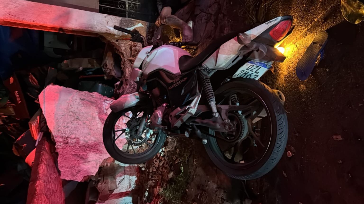 Imagens divulgadas nas redes sociais mostram o muro completamente destruído e a moto caída no local do acidente. Os ocupantes da motocicleta foram arremessados com o impacto da colisão.