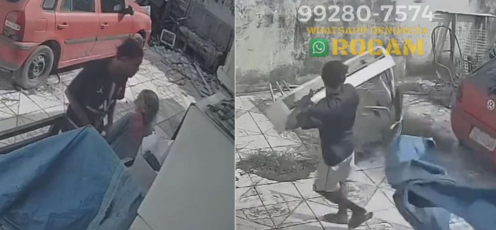 Nas imagens, é possível ver o suspeito entrando no imóvel e retirando o aparelho sem demonstrar pressa. Mesmo diante da tentativa da idosa de impedi-lo, ele ignora e sai levando o objeto.
