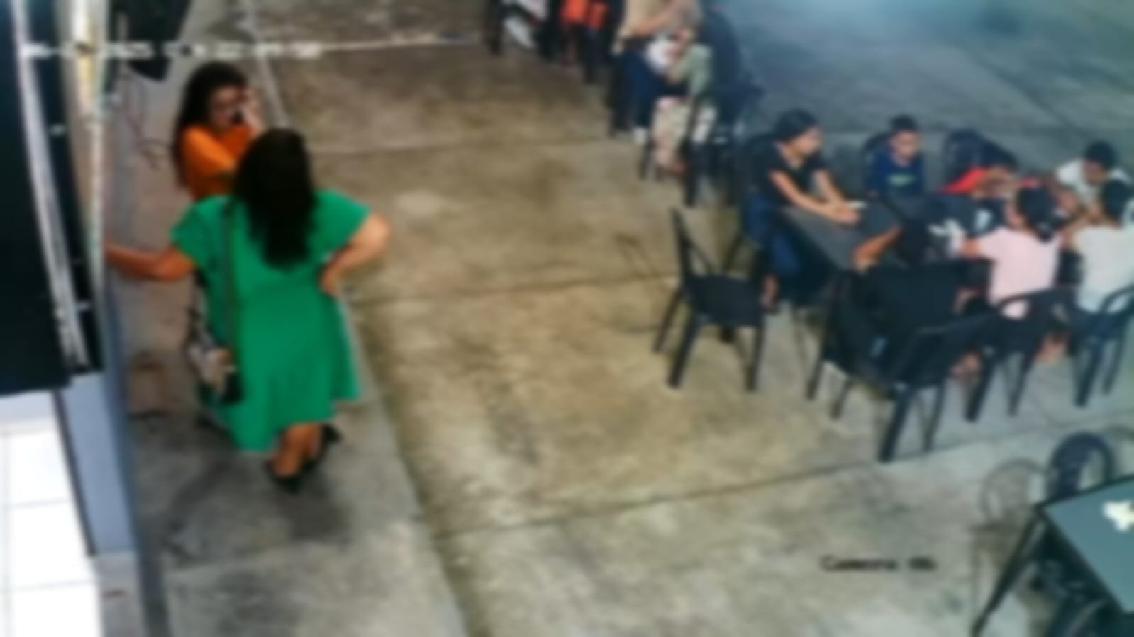 Os suspeitos chegaram correndo no estabelecimento e em seguida eles furtam os pertences das pessoas que estavam nas mesas do lado externo do estabelecimento. A dupla fugiu em uma motocicleta após o crime.