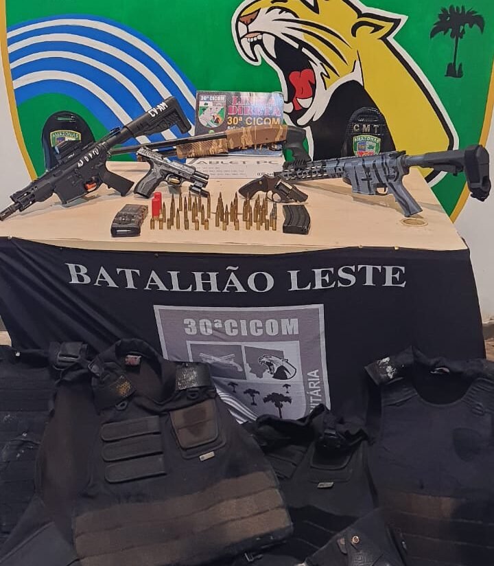 O major Aldivan Rodrigues destacou que após a equipe policial se deslocar até o local denunciado, os suspeitos já estavam em posse de um fuzil T4; um fuzil M16; revólver calibre 38; pistola .40; e uma escopeta calibre 12, além de quatro coletes balísticos.