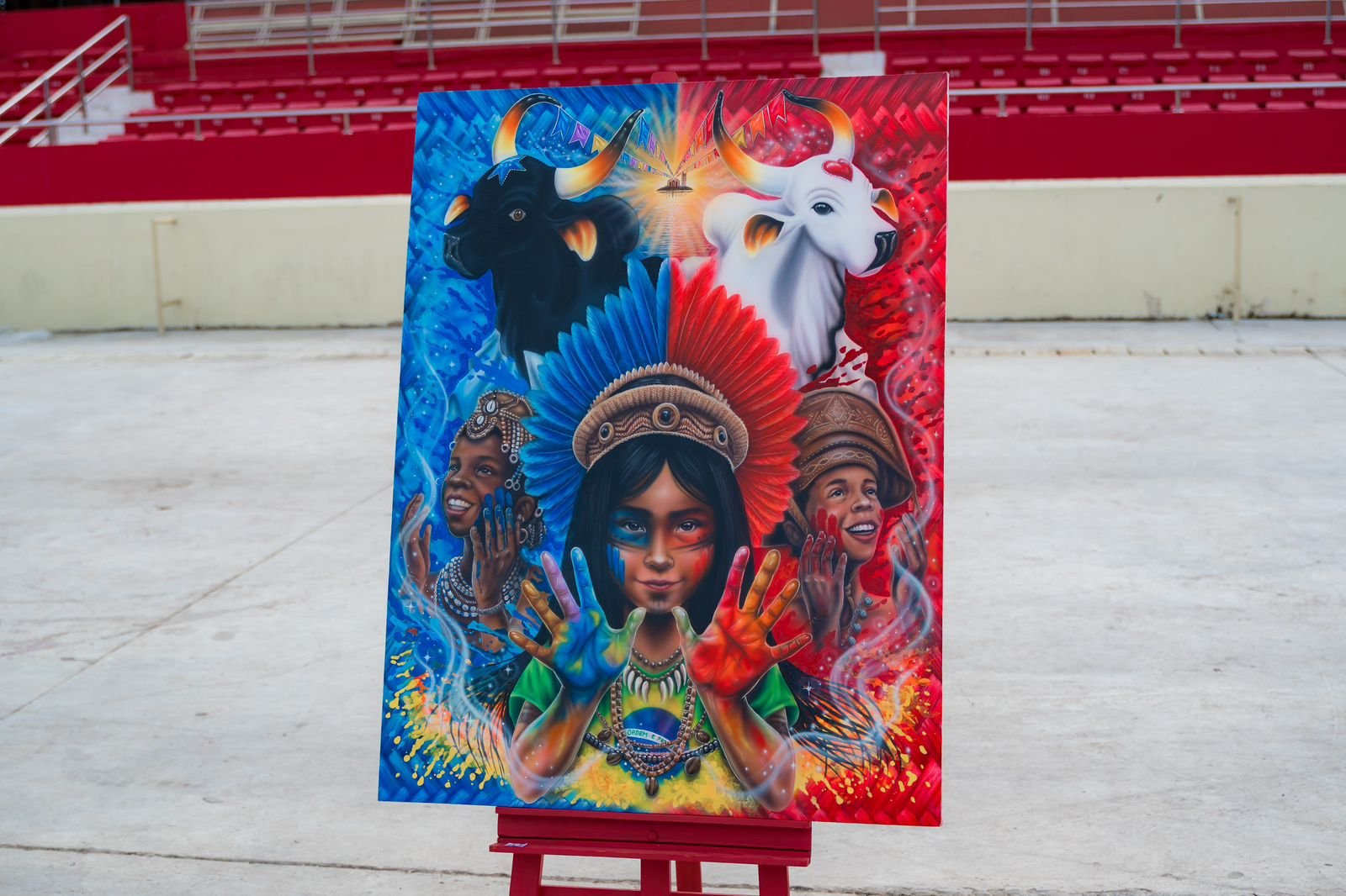 Com título “Parintins, a Cor da Minha Raça”, a pintura do artista Pedro Paulo