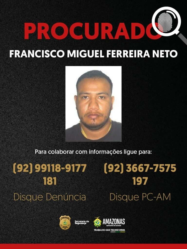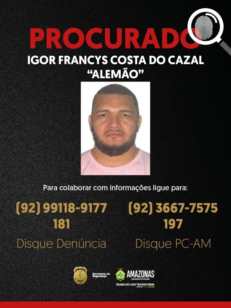 Informações sobre o paradeiro dos suspeitos podem ser repassadas pelos números: (92) 99118-9177, disque-denúncia do 1º DIP; (92) 3667-7575 e 197, da Polícia Civil; e 181, da Secretaria de Segurança Pública do Amazonas (SSP-AM).