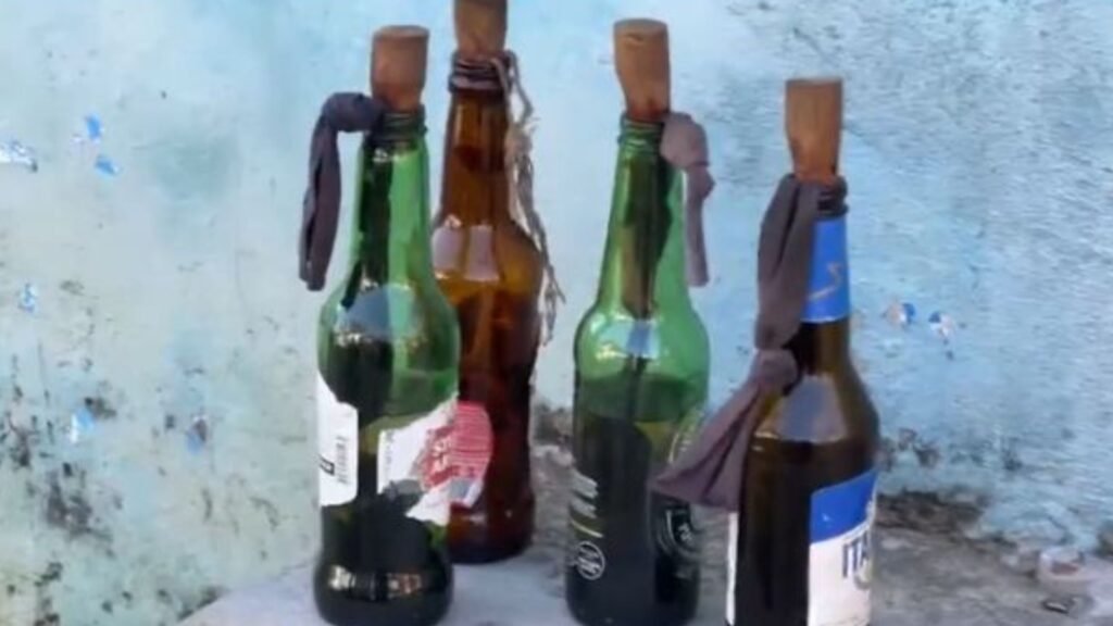 Segundo informações da polícia, foram encontradas quatro garrafas de coquetel molotov que seriam usadas para atear fogo na casa.