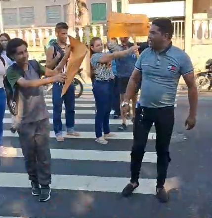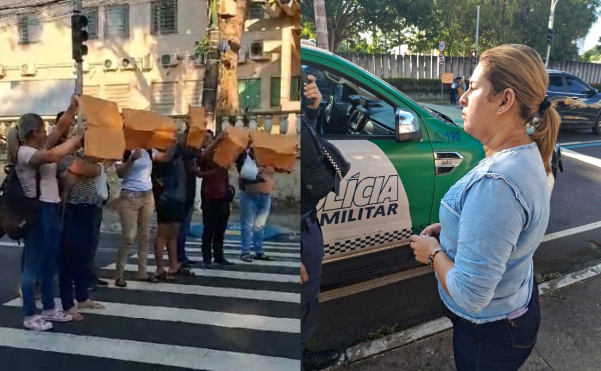 MANAUS (AM) – Com cartazes e gritos de “Governador queremos receber”, funcionários da FK Empresarial, que presta serviços de limpeza para o Instituto da Mulher Dona Lindu, localizado na zona Centro-Sul de Manaus, no bairro Adrianópolis realizaram uma manifestação, nessa quarta-feira, 31/7, na frente do Hospital e Pronto Socorro 28 de Agosto. No local havia policiamento.