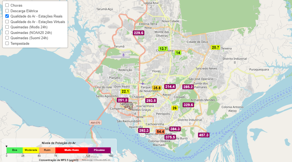 Manaus enfrenta uma séria preocupação com a qualidade do ar, já que a exposição prolongada ao material particulado tem causado impactos na saúde da população. A inalação de partículas suspensas no ar pode levar a problemas sérios, especialmente para grupos sensíveis, como crianças, idosos e pessoas com doenças preexistentes como asma, bronquite e rinite, ou com doenças respiratórias e cardíacas.