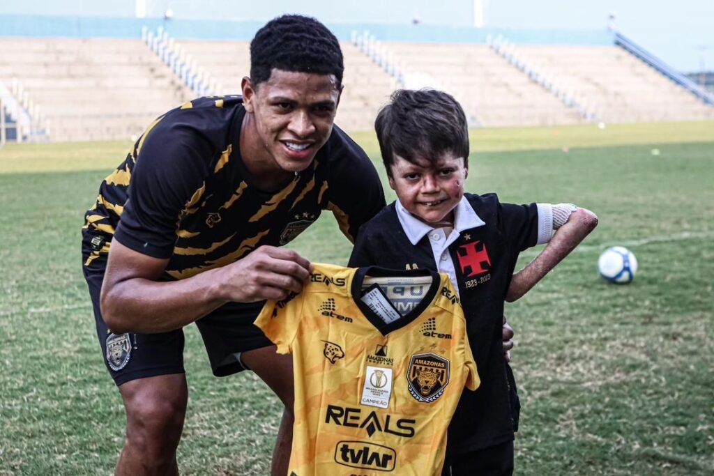 MANAUS (AM) – O torcedor mirim ícone do Vasco, Guilherme Gandra, de 9 anos, fez uma visita ao local de treino do time Amazonas FC na tarde dessa quinta-feira, 1º/11, no estádio Carlos Zamith, localizado no bairro Coroado, zona Leste de Manaus. Ele foi recebido com carinho pelos jogadores do clube.