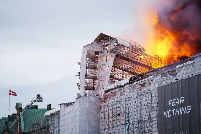 O incêndio começou na manhã de terça-feira no telhado de cobre do Old Stock Exchange, ou Boersen, espalhou-se por grande parte do edifício e do telhado, partes do qual também desabaram, e destruiu o interior do edifício, disse o porta-voz dos bombeiros Jakob Vedsted Andersen.