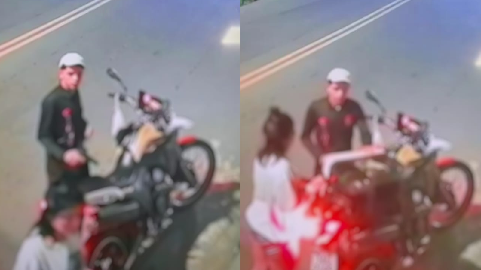 Imagens registradas por câmeras de vigilância, que circulam nas redes sociais, mostram o momento em que o motociclista realiza a entrega e, logo em seguida, é abordado por um homem e uma mulher, ambos ainda não identificados.