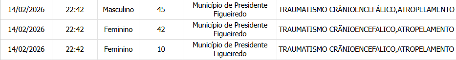 MANAUS (AM) – Kelly Regiane Bia Gomes, 42, Dainler Lima Vulcão, 45, e Clara Victoria Gomes Vulcão, 10, morreram neste sábado, 14/2, após serem atingidos durante um grave acidente de trânsito na BR-174, no km 92, zona rural de Presidente Figueiredo, no Amazonas.