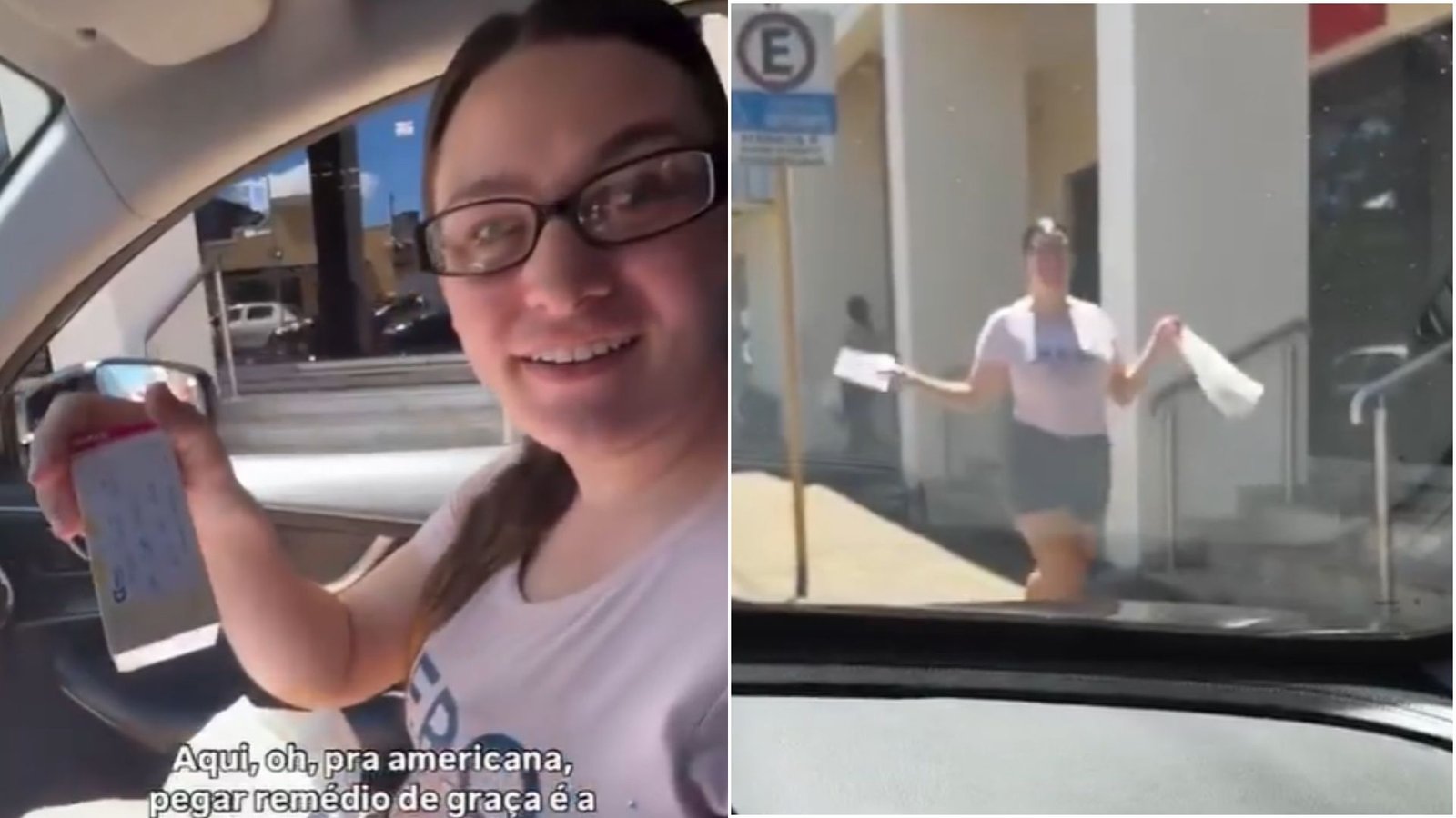 Ângela mostra a reação de felicidade ao receber o remédio sem custo em uma unidade. A cena chamou atenção justamente por contrastar com a realidade de países como os Estados Unidos, onde o acesso a medicamentos é caro e limitado.