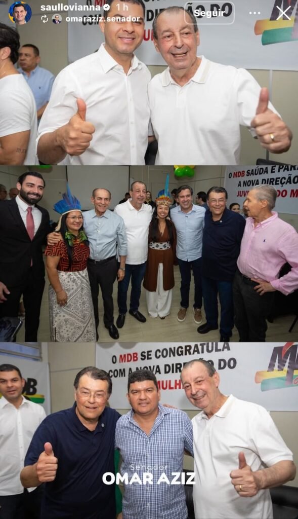 Já nesta quarta-feira, 4, o cenário mudou. No evento “MDB em Movimento – Ato de Filiação”, Saullo foi recebido oficialmente pelo partido, registrando um encontro que chamou atenção: ele ao lado de Omar Aziz, sugerindo um alinhamento político.