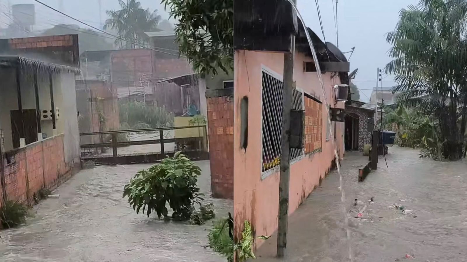 Durante a gravação, feita em meio à chuva, é possível ver uma das vielas completamente tomada pela água da chuva e do igarapé que transborda, dificultando a circulação de moradores e deixando famílias ilhadas. Jhones conversa com uma moradora da área, que relata que os transtornos se repetem sempre que chove, mesmo em precipitações leves.
