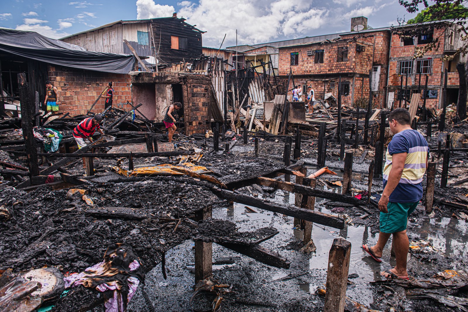 Ao todo, a Defesa Civil informou que 26 famílias foram impactadas pelo incêndio, que ainda não se sabe a causa. No mesmo dia, no período da tarde, o local foi novamente afligido por uma inundação causada pela forte chuva.
