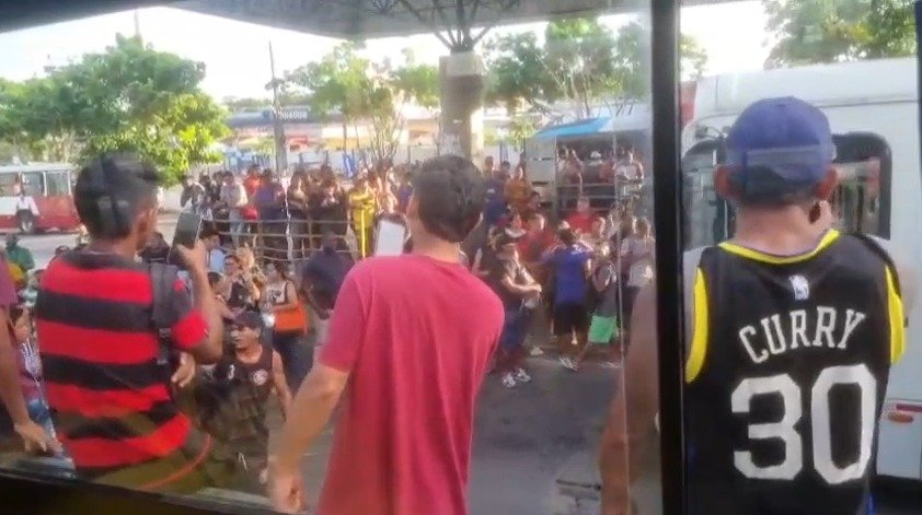 Um outro usuário que gravava a manifestação também manifestou o seu descontentamento. “Olha aí, estão fechando aí, não tá saindo ônibus e nem nada. Todo mundo indignado e não têm ônibus. Olha a indignação do pessoal aí”, afirmou ele.