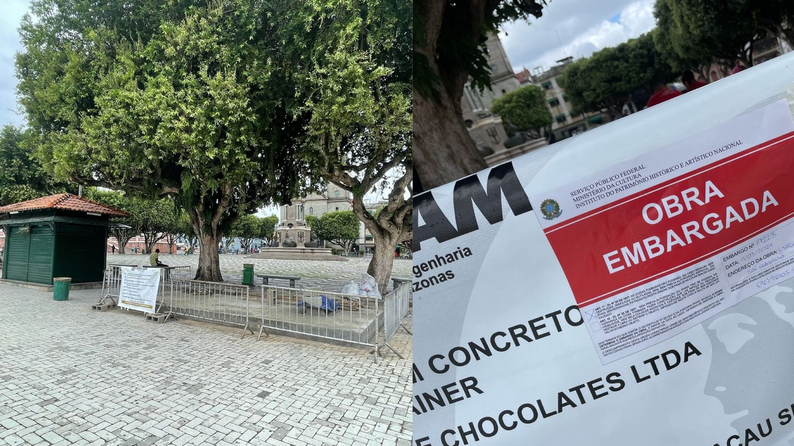 MANAUS (AM) – Uma obra que visava instalar uma loja de chocolates no largo de São Sebastião, no Centro de Manaus, foi embargada na segunda-feira, 11/3. A iniciativa, que tinha como objetivo principal a montagem de um contêiner para abrigar a loja, foi criticada pela população devido à intervenção no espaço público que é tombado na esfera municipal e federal.