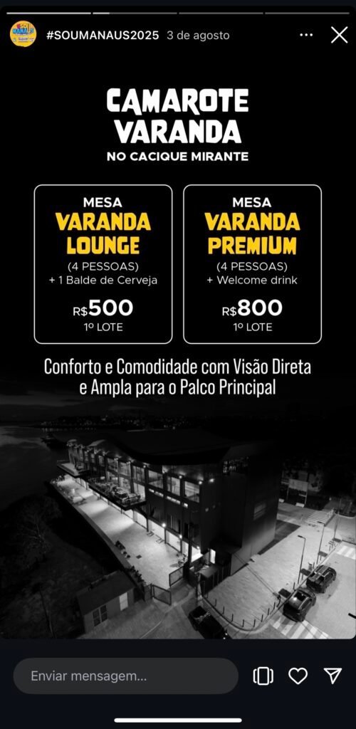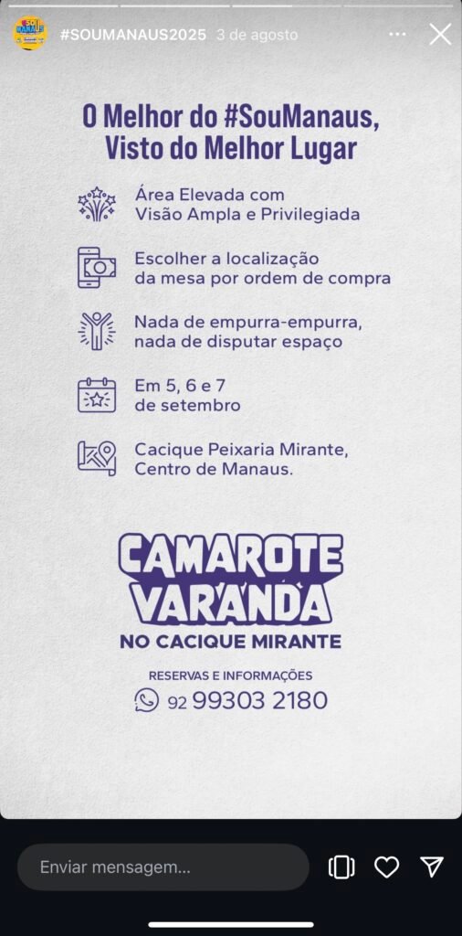 MANAUS (AM) – Uma peixaria localizada no Mirante Lúcia Almeida, no Centro de Manaus, foi denunciada por vender, a preços abusivos, ‘camarotes’ durante os dias em que será realizado o evento #SouManaus Passo a Paço.