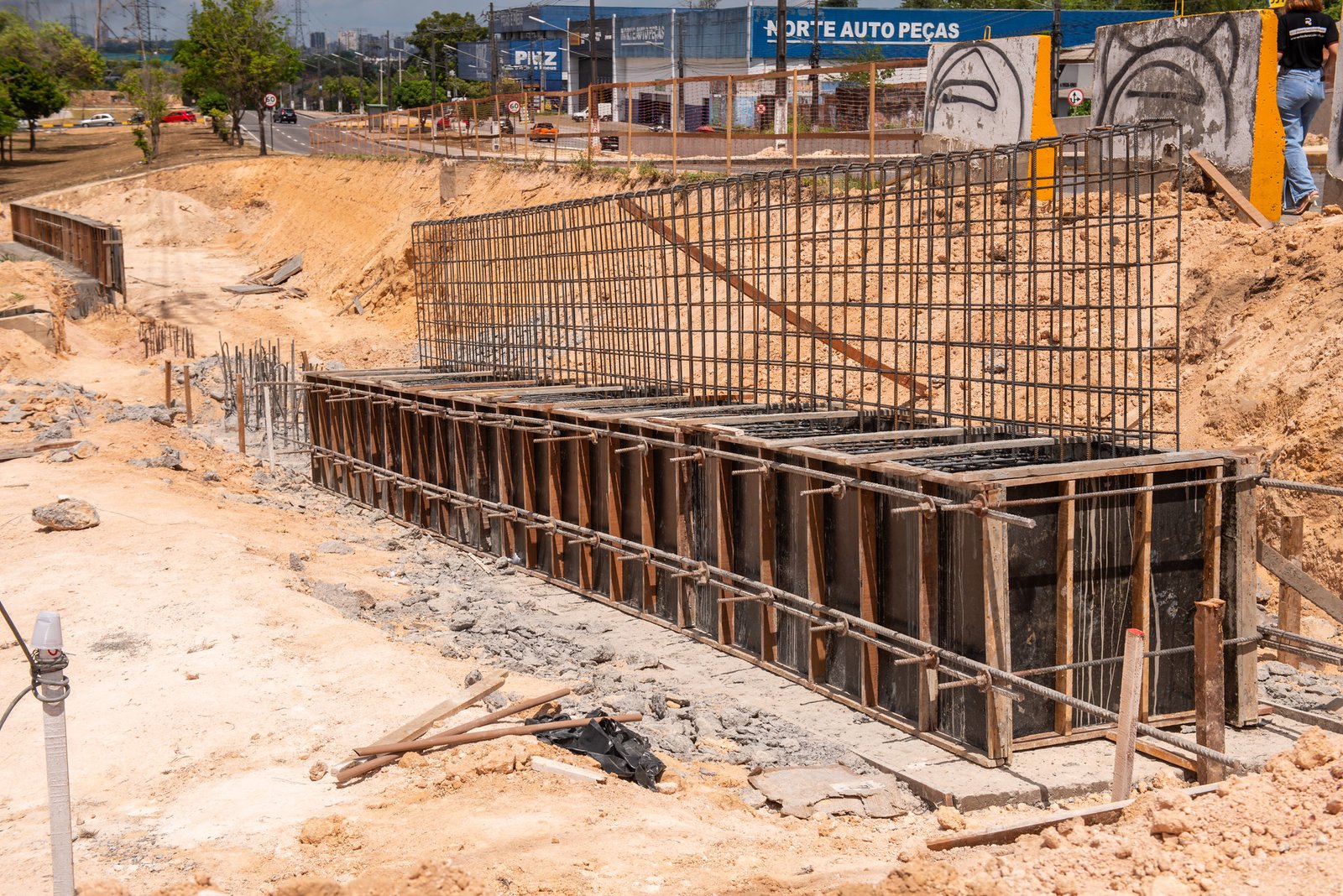 A obra está na fase de implantação das 800 estacas e vigas de coroamento. Em seguida, as equipes iniciam a escavação da via para a construção da passagem subterrânea, daí a necessidade da interdição do cruzamento.