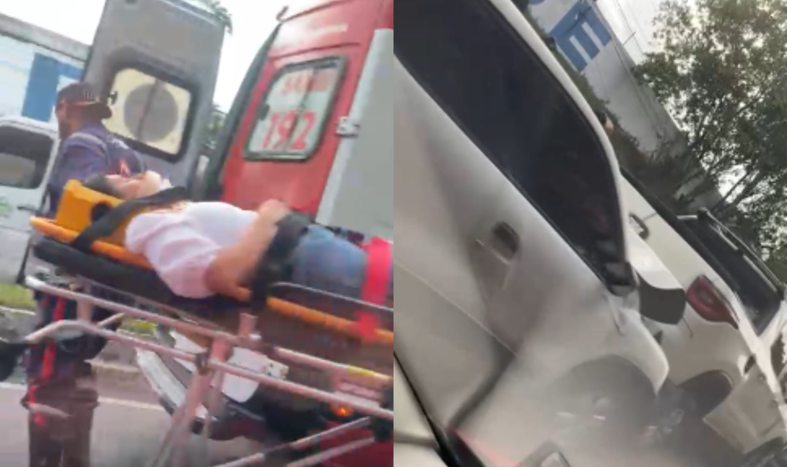 Vídeo: Acidente entre três veículos deixa mulher ferida na avenida Rodrigo Otávio em Manaus