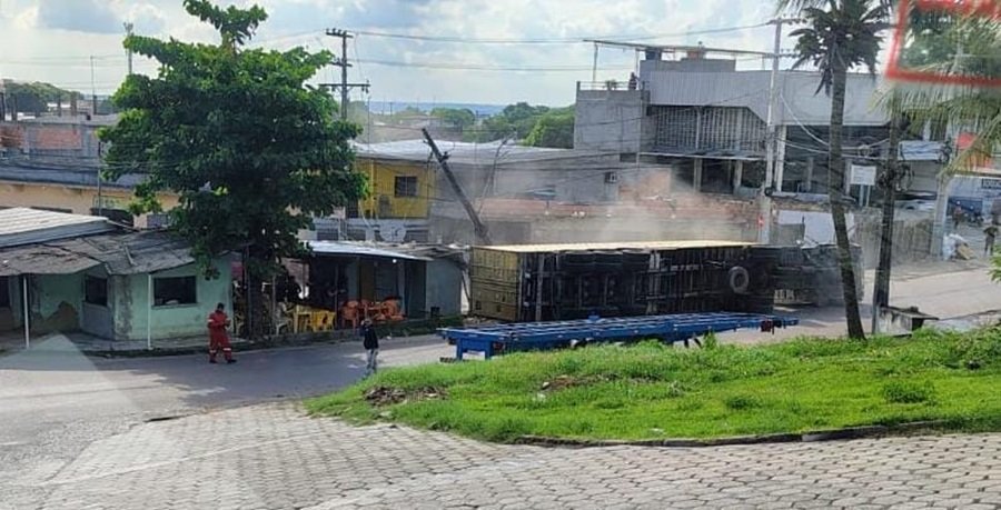 MANAUS (AM) – Uma carreta tombou na saída do Porto Chibatão, na zona Sul de Manaus, na tarde desta sexta-feira, 5/12, deixando o trânsito lento na região. O veículo pesado tombou no sentido da Avenida Presidente Kennedy, no bairro Colônia Oliveira Machado.