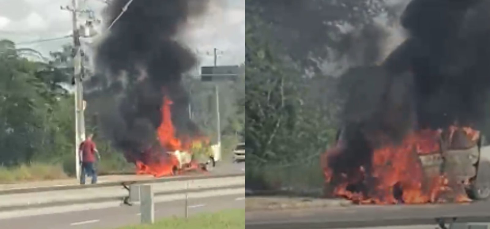 Vídeo: Carro pega fogo na avenida do Turismo em Manaus