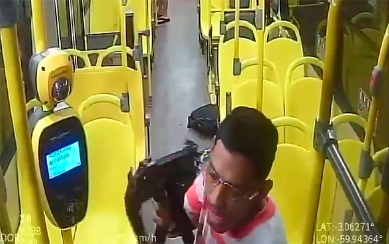 As câmeras de monitoramento do ônibus da linha 008, que faz rota entre as zonas Leste e Oeste, foram divulgadas pela Polícia Civil do Amazonas (PC-AM) para identificar e localizar os assaltantes. As imagens mostram toda a ação criminosa dentro do coletivo.