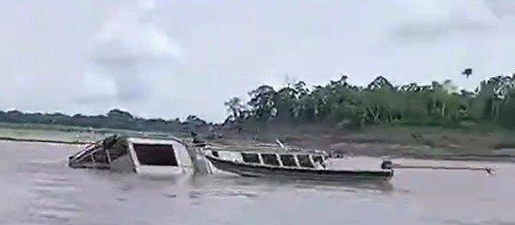 Imagens compartilhadas por tripulantes e ribeirinhos da região mostram a embarcação afundando no meio do Rio Solimões.