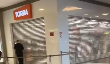 Em um vídeo que circula nas redes sociais, é possível ver dois grupos de pessoas reunidos em frente à loja, tentando entender o motivo do fechamento temporário e a situação dos funcionários que estavam dentro do estabelecimento no momento da ocorrência.
